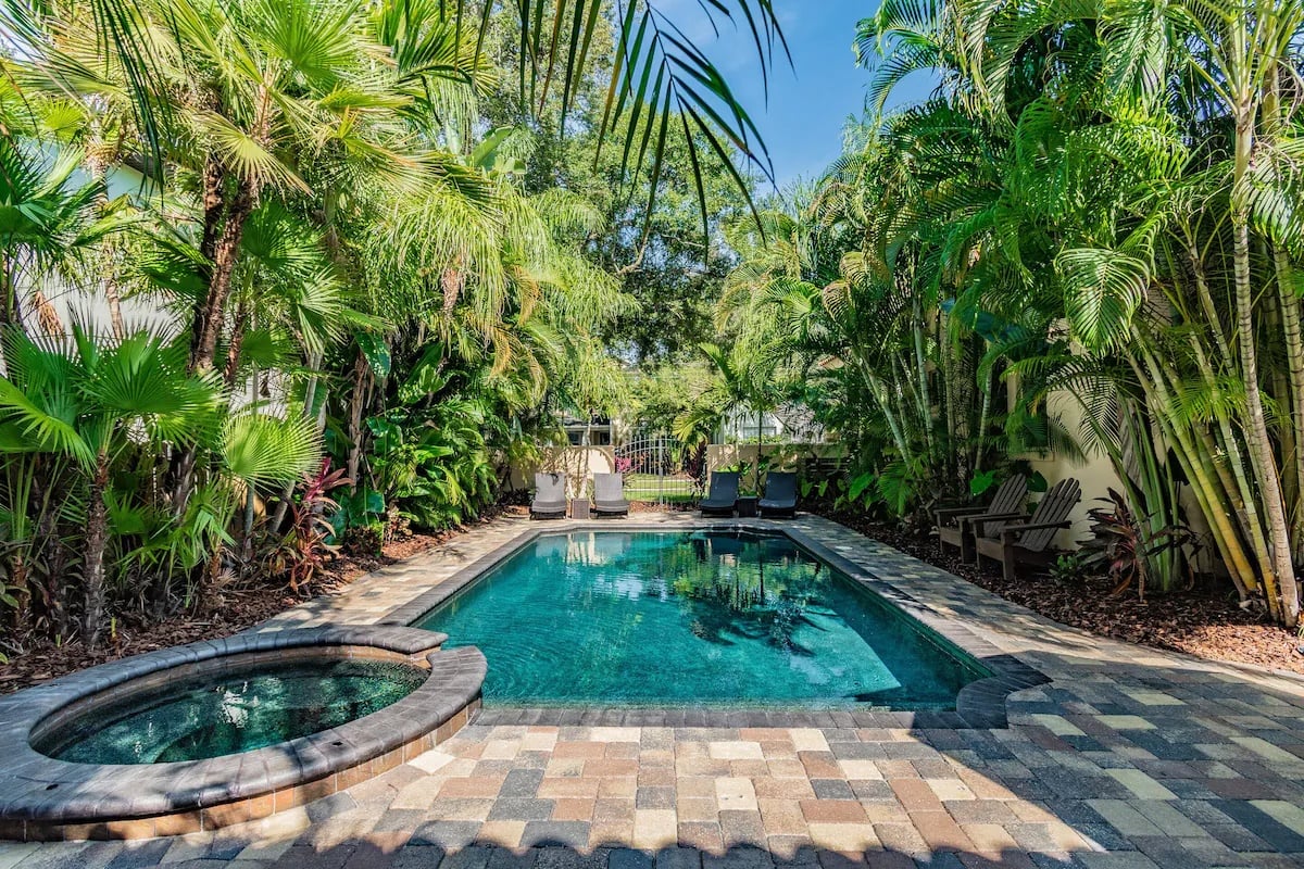 This beautiful Spanish-style home is warm, inviting, full of great vibes, and minutes from the airport, downtown Tampa, Hyde Park Village, and Bayshore Blvd. The homes been completely renovated and is equipped with a HEOS indoor/outdoor AV system, an automated salt water pool and spa, and a green egg and gas grill to enjoy and entertain with family or friends.